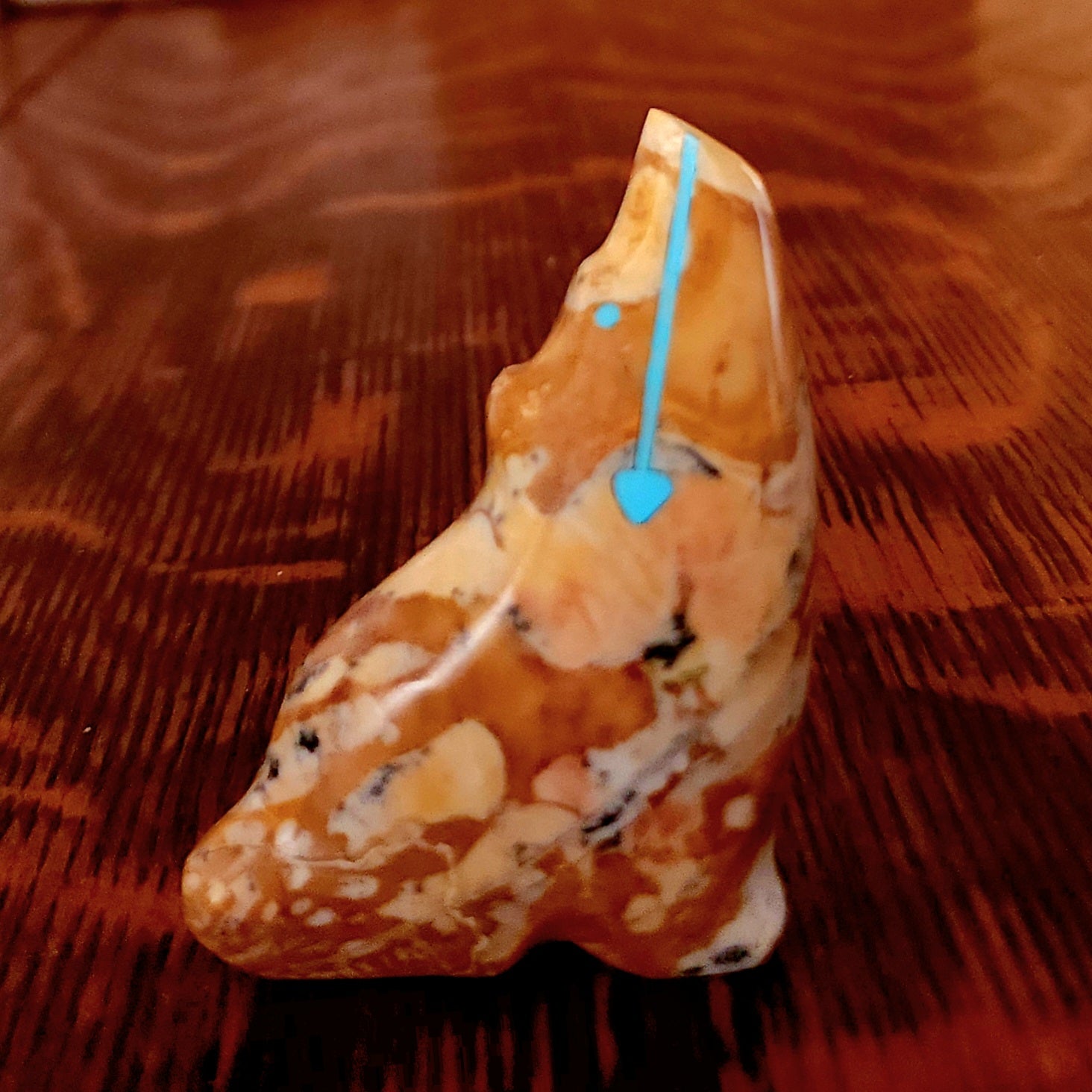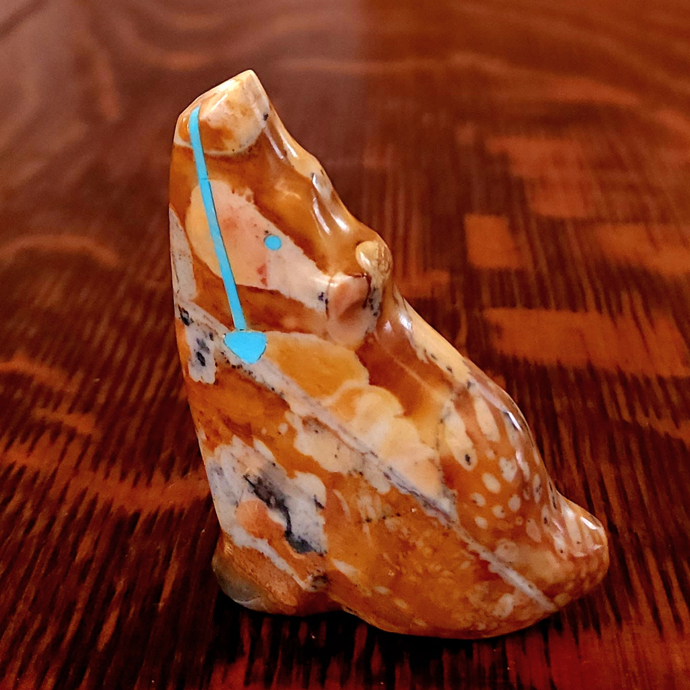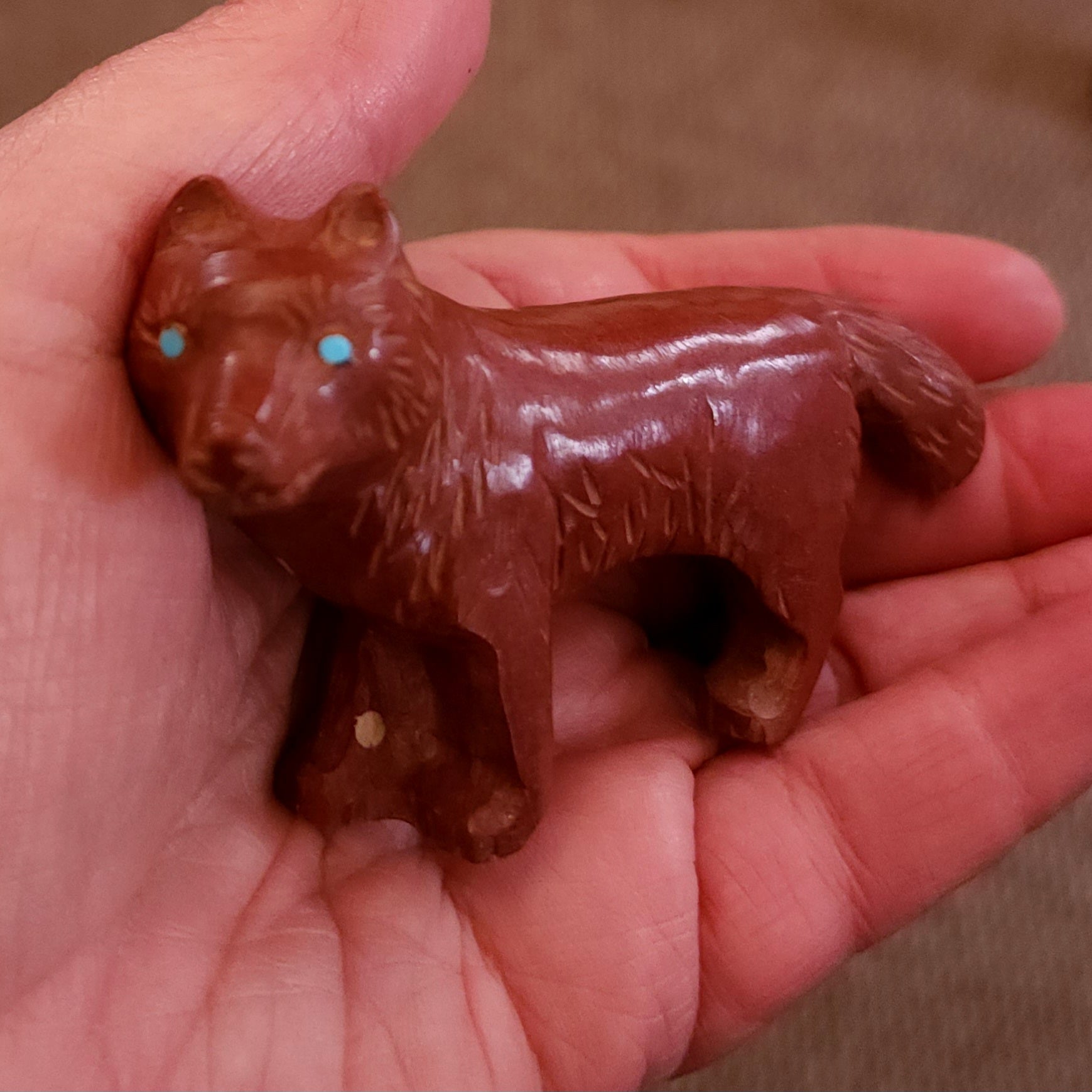 Wolves, coyotes and foxes all look the same in the distance. In Zuni there is a word that translates into "bushytail" in English. You get to determine what this carving looks like to you!